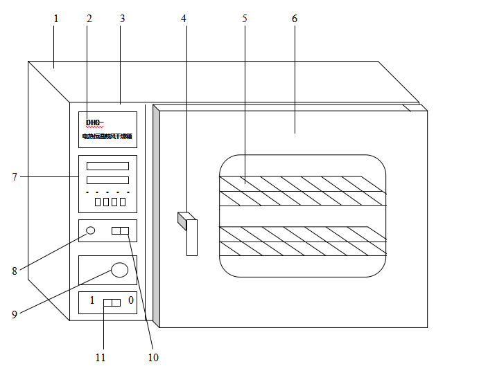 1. 把需干燥處理的物品放入干燥箱內,關好箱門。