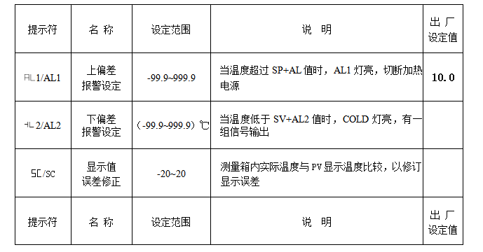 b) 開機,當設備運行**恒溫狀態(1~2小時左右),比較實際溫度與測量值顯示溫度的差值,其差(實際溫度-測量值顯示值)即是測量值修正參數SC需要修改的值,即: